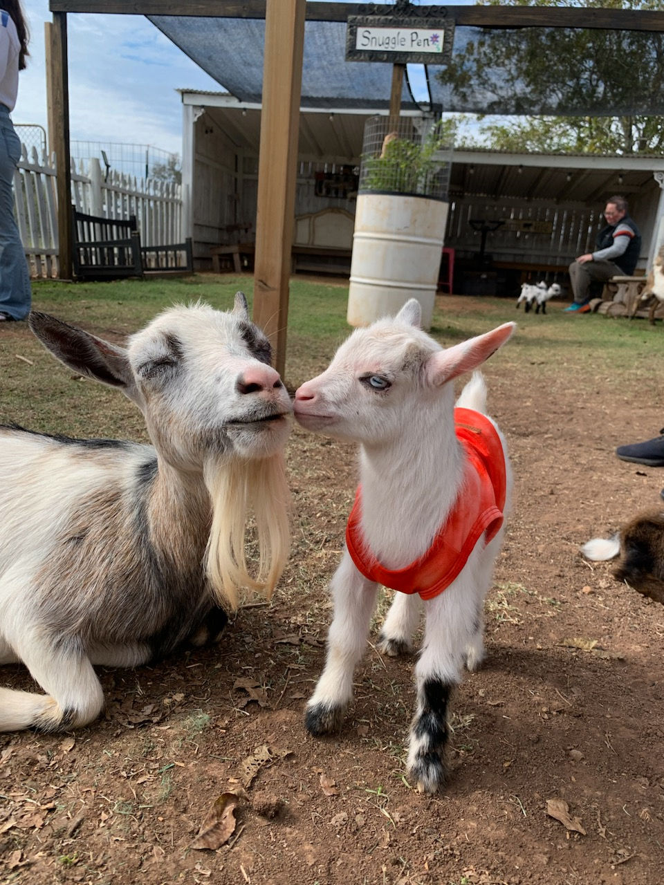 We raise the friendliest baby goats! We are proud to raise the most loving baby goats! Our little ones are nurtured from the very first day and receive lots of attention from people. In fact, within their first week, they visit the Baby Goat Snuggle pen where they are held and cuddled by visitors to the farm. After just a few weeks, they join the goat yoga class where they learn to jump and play while people do yoga. You won't find goats that are raised to be more sociable and interactive!